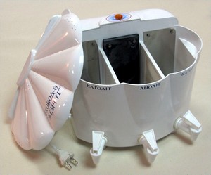 Для приготовления воды в камеры фильтра наливается обычная вода из-под крана или любого другого источника. Анодная камера заполняется полностью, а катодные заливаются на 2 см меньше (на два пальца). Затем аппарат накрывается крышкой и включается в сеть - загорится красная лампочка. Когда вода достигнет нужного качества, фильтр автоматически отключается и начинает играть мелодия. Время очистки воды может длиться от 20 минут до часа, в зависимости от уровня загрязнения.