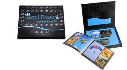 Подарунки Royal Present - це унікальні подарункові сертифікати на різноманітні події, послуги та пригоди. Унікальність подарункових сертифікатів Royal Present полягає в тому, що Ви даруєте не речі, а дивовижні послуги, що викликають у володаря сертифікату море позитивних емоцій. Саме тому наші подарунки називають Подарунки-враження. Кожен подарунок – це оригінальна ідея, обгорнута в стильну коробку, дивовижне, захоплююче хвилювання, яке залишиться в пам’яті назавжди! Унікальні подарунки: Політ на повітряній кулі, стрибок з парашутом, шоколадне обгортання, тайський масаж,, персональна фотосесія, романтичний політ, фігури вищого пілотажу і багато іншого |